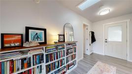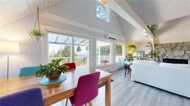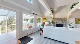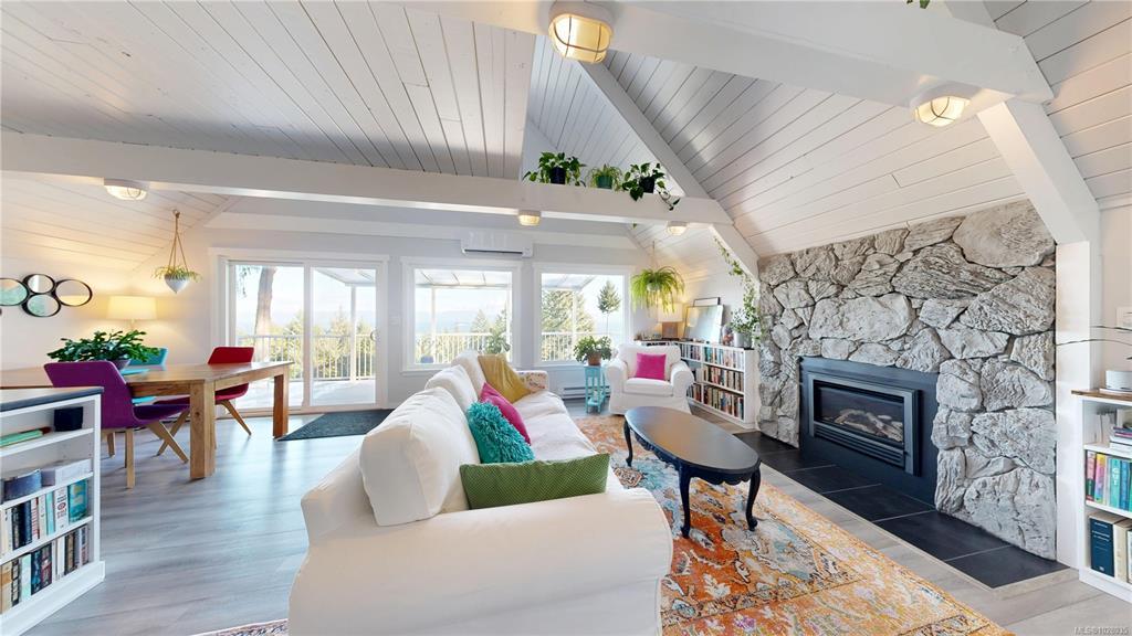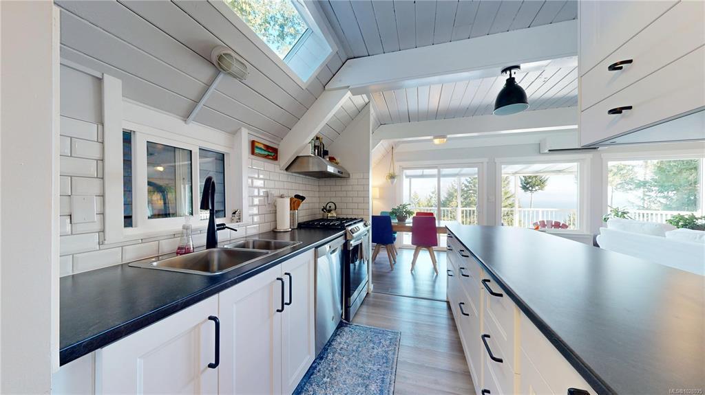 Stunning ocean and mountain views set the stage for this beautifully renovated 2-bedroom home on just over half an acre in a peaceful island setting. Vaulted wood ceilings and large windows fill the home with natural light and frame views of snow-capped mountains, passing ferries, and the ocean beyond. The updated interior features a renovated kitchen and bathroom, new windows, modern appliances including a propane stove, high-efficiency heat pump, and propane fireplace. A loft provides flexible space for a hobby room, yoga nook, or home office. A detached, fully wired office/studio with its own view offers an inspiring space to work or create. The easy-care property includes a private well, septic system, storage shed, and room for gardening, relaxing, or simply enjoying the ever-changing coastal views. Full information package with virtual, video tour and floor plans available. All information to be verified by the buyer if deemed important.