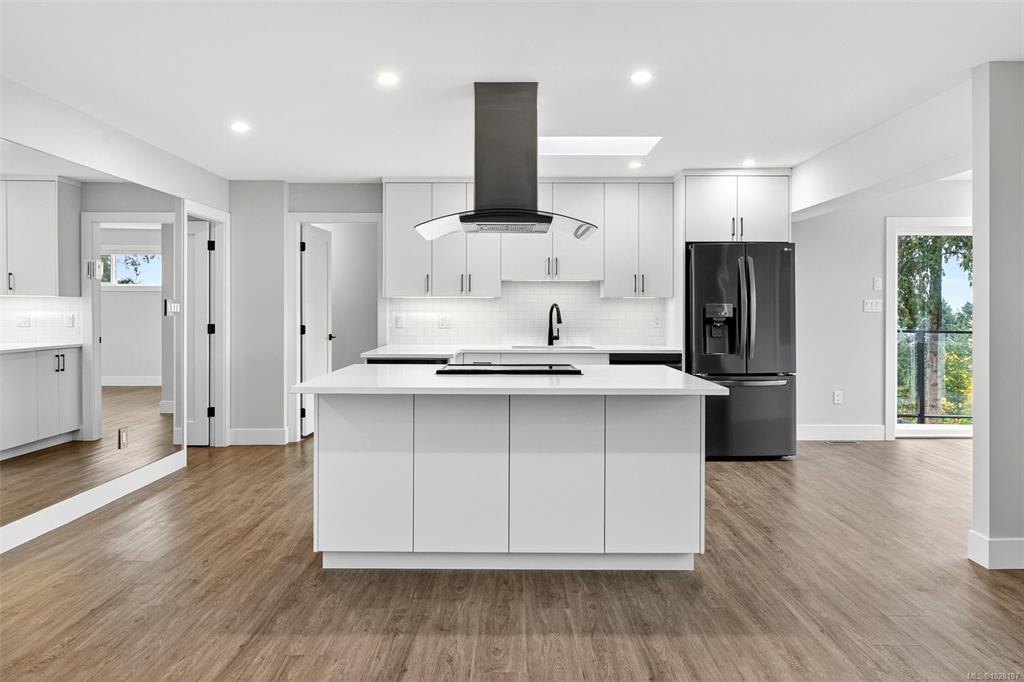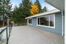 Virtually brand NEW! Panoramic ocean views, this beautiful home sits on a sunny 0.45-acre lot in desirable Mill Bay and offers over 3,600 sq. ft. of thoughtfully designed living space with outlooks from nearly every room. Perfect for multi-generational living or a revenue generator. The main floor features open-concept living and dining areas oriented to showcase the Salish Sea and Mt. Baker, plus 4 bedrooms (2 with ensuites), a separate laundry room, and a spacious mudroom with its own entrance. Downstairs, a newly finished, fully self-contained 2-bed + den in-law suite enjoys large windows, its own ocean views, and a covered patio—ideal for guests or extended family. The professionally landscaped, low-maintenance yard includes full irrigation and is fully fenced. Dual remote-controlled gates provide separate driveways and private access to both the main home and the in-law suite.