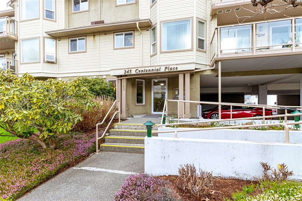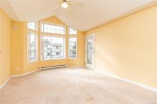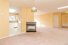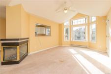 Top-floor 2 bed, 2 bath condo in the desirable 55+ Centennial complex with secure entry and elevator access. Offering 1,262 sq ft, this bright and spacious unit features an open living and dining area separated by a cozy 3-sided natural gas fireplace. The living room boasts vaulted ceilings, large south-facing windows, and access to the private balcony.
