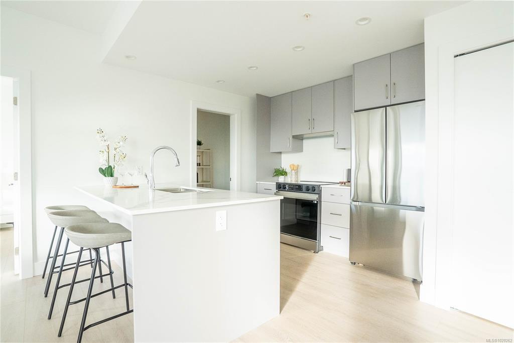 OPEN HOUSE Sat March 14th, 1-3pm. Welcome to The Royale. Starting at $474,900*,a collection of 55 elegant homes that are MOVE IN READY redefining modern living. Property Transfer Exempt and GST for some buyers. Nestled in a prime location, The Royale seamlessly blends contemporary design w/ timeless elegance. Beautiful one, two, and three bedroom homes that are thoughtfully designed w/high-end finishes, spacious layouts, high ceilings, & private patios. Premium details include stainless steel Samsung appliances, High end fixtures, and wide plank flooring. Secured underground parking, AC, Rooftop Patio, and much more. Situated in the vibrant community of View Royal and situated just minutes from parks, beaches, schools, shopping, Vic General Hospital, & the convenience of a boutique commercial space right on the ground floor. Experience the perfect balance of urban accessibility & the natural beauty of Vancouver Island. Strata fees covering both heat & air conditioning. *Price+GST.