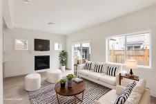 Discover the premier residence at Rosefinch, situated on the largest corner lot in this boutique Happy Valley development. As the most spacious house in the collection, this home offers a functional two-level floorplan encompassing over 2,300 square feet of modern living space. This detached single family home features four bedrooms and four bathrooms, including a bright one-bedroom legal suite that serves as a valuable mortgage helper. The main residence boasts a sophisticated kitchen with a full appliance package and quartz countertops, flowing into a living room warmed by a gas fireplace. Upstairs, the primary suite provides a serene retreat with a heated tile ensuite. Practical features include a single garage, individual heat pumps for the house and suite, and a ten-year new home warranty. Built by trusted local developer TEKloch Homes, this property combines quality craftsmanship with a convenient location. Photos of similar home. Plus GST. Move in by June 4, 2026
