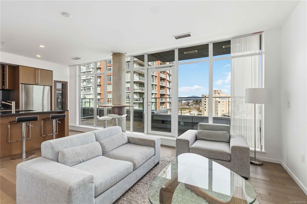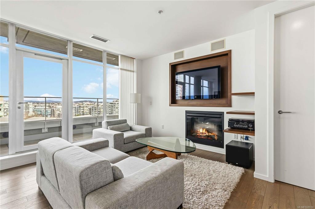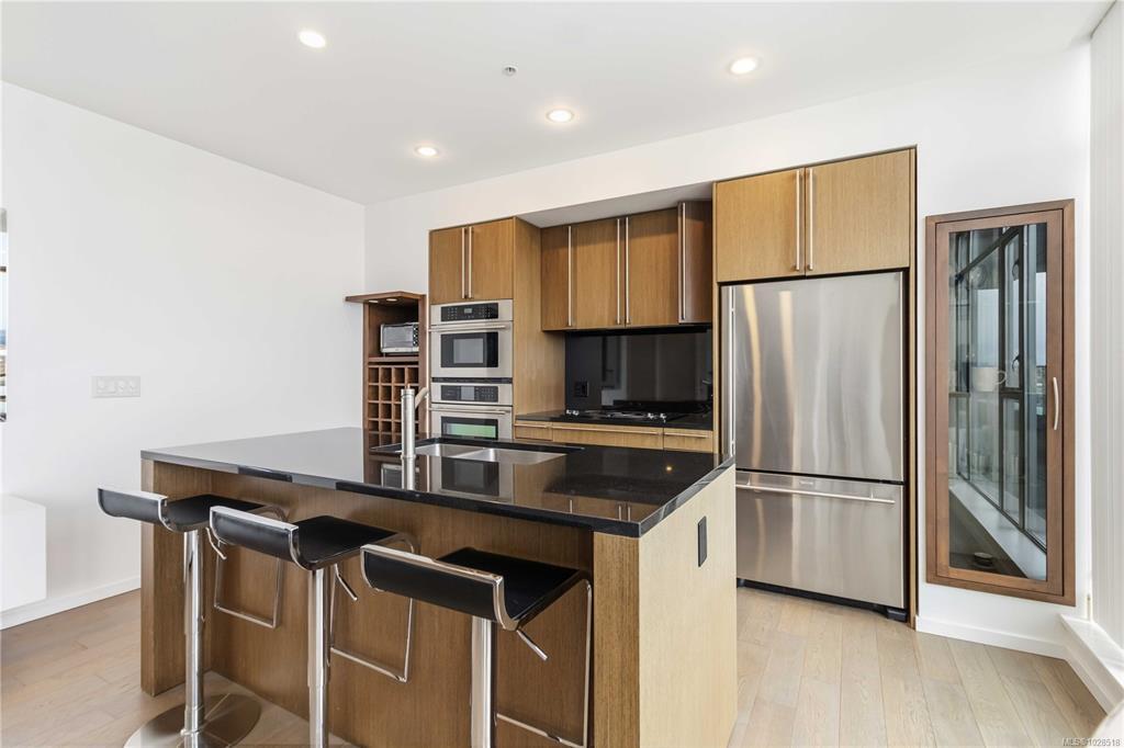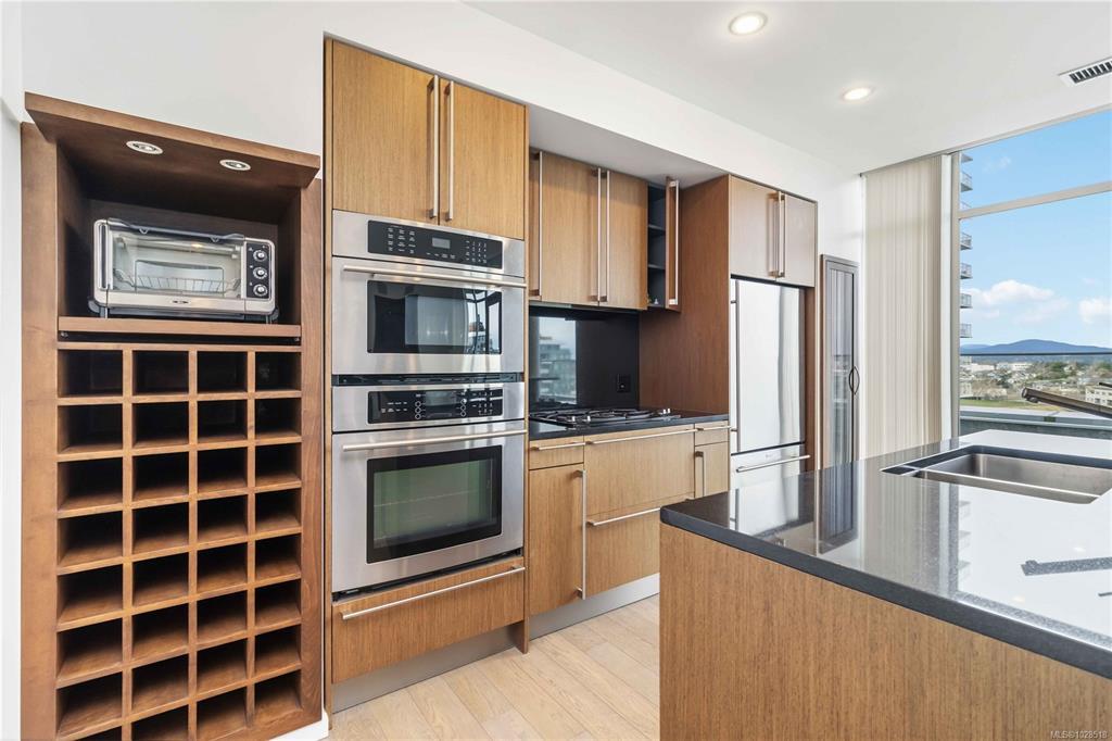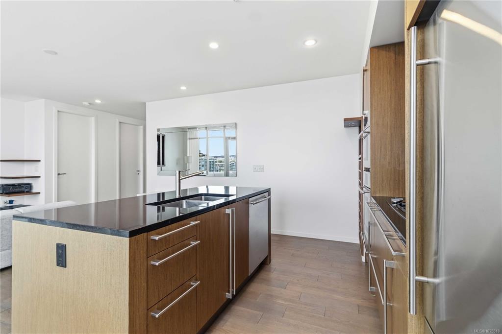Welcome home to this completely customized sub penthouse home at the coveted Bayview Residences. Located in one the the best spots in Victoria and Songhees corridor, this home offers some of the finest ocean, mountain and city views in all of Greater Victoria. Meticulous millwork and custom lighting throughout, hardwood floors, granite countertops, Jenn Air stainless appliances, air conditioning and wall-to-wall/floor-to-ceiling windows in every room. Huge deck surrounded by ocean and city views perfect for all your summer entertaining and bbq's. Huge primary bedroom with walk-in closet finished off with a spa-like bathroom. Amenities include an on-site concierge, complete fitness studio + gym, hot tub, sauna plus an amazing owner's patio with firepit + outdoor kitchen with BBQ, lounge with big screen TV's, ping pong, pool table, car wash, dog wash, kayak storage and a guest suite. Don't miss this opportunity to live in an amazing community.