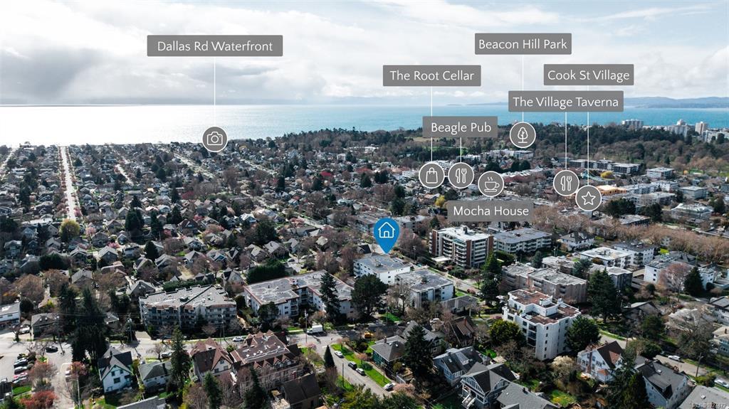 Ideally located in the heart of Fairfield, you’re just steps to Cook Street Village and a short walk to the scenic Dallas Road waterfront. Welcome to this bright and spacious top-floor southwest corner unit offering 1,133 sq. ft. of comfortable living space with beautiful mountain and city views. This well-designed condo features 2 bedrooms and 1.5 bathrooms, generous room sizes, and plenty of natural light throughout. The enclosed west-facing balcony is the perfect place to relax and enjoy the sunset. Enjoy one of Victoria’s most sought-after neighbourhoods with a Walk Score of 93 making daily errands and recreation incredibly convenient. Set in a quiet, family-oriented neighbourhood with no age restrictions, this home offers outstanding lifestyle and value. Check out the property feature sheet link to see the property website showcasing TWO videos with more details on the area and property. Book your private viewing today!