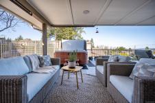 Perched in one of the area’s most sought-after seaside neighborhoods, this beautifully maintained 2,100 sq. ft. home offers 4 bedrooms, 2 baths, and a stunning ocean view. Thoughtful updates throughout include a new roof (2025), heat pump and furnace, upgraded insulation, updated windows, and fresh paint—providing comfort and peace of mind for years to come. The spacious open kitchen is perfect for gathering, complete with plumbing for a natural gas range and easy flow to the expansive sunny deck. Enjoy outdoor living at its finest with a large entertaining deck, hot tub area, and built-in speakers—ideal for relaxing evenings while taking in the ocean air. The beautifully updated bathroom adds a touch of luxury, while the fertile veggie gardens and separate workshop space make this property perfect for gardeners, hobbyists. A rare opportunity to enjoy coastal living in a quiet, established neighborhood close to the sea.