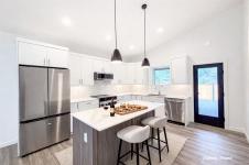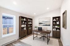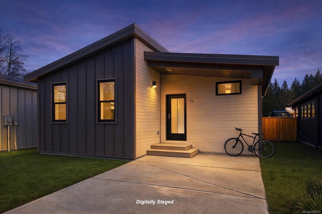 This Northern Flicker is a stunning 2 bed 2 bath home offering incredible value. Spanning over 1,200 sq ft, you'll be impressed with the spacious layout, contemporary design and high end finishings. Turn-key ready with full appliance package, quartz countertops, heat pump, modern kitchen cabinets, large island and well appointed laundry room with storage, sink and quartz countertops. Natural gas fireplace &Heat Pump! The open concept kitchen-dining-living area is light and airy with soaring 12 ft vaulted ceilings and7 windows for plenty of natural light. The show stopper is the 14' x 10' covered rear patio and spacious back garden, perfect for relaxing with family and entertaining friends. With a metal frame, metal siding and metal roof, maintenance is minimal. Notice the thick 12' walls, high energy performance and low running costs. GST applies. The Flats of Cumberland is a brand new community of 56 beautiful homes, more info at www.theflatsofcumberland.ca