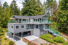 Elevated Westcoast Paradise! Your dreams of a bustling family hub, a thriving B&B venture, or a tranquil retirement retreat will come to life in this gorgeous approx 2600 sqft, 4BR, 4BA haven. Located on a peaceful no-thru road, this fully fenced property offers excellent privacy, surrounded by lush greenery & nature. Experience sun-drenched mornings as sunshine streams through expansive south-facing windows, illuminating high cathedral ceilings in the open-plan kitchen & dining areas. Step outside onto the gigantic deck, your personal oasis for starlit gatherings & afternoon escapes. Recent upgrades since 2022 include a new roof, windows, plus fresh interior & exterior paint. A dedicated lower studio suite offers endless possibilities & is ideal for guests, office space, or rental income. The nearby Magic Lake Swimming Hole beckons on those sunny afternoons, while several choice beach access points & the exclusive Thieves Bay Marina add to the allure of this fantastic neighborhood!