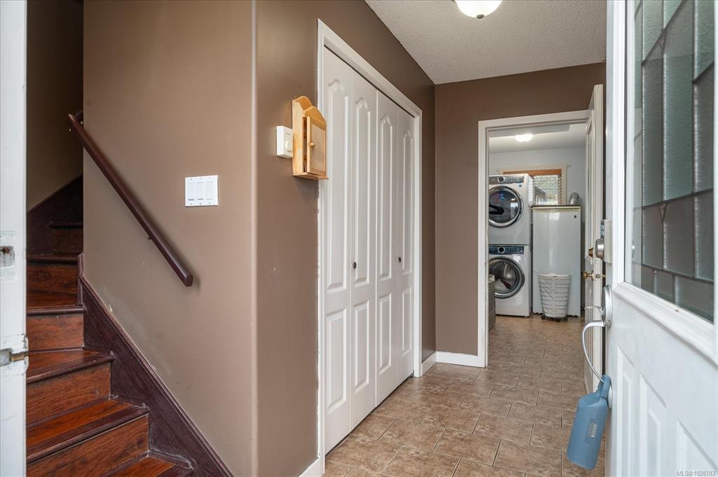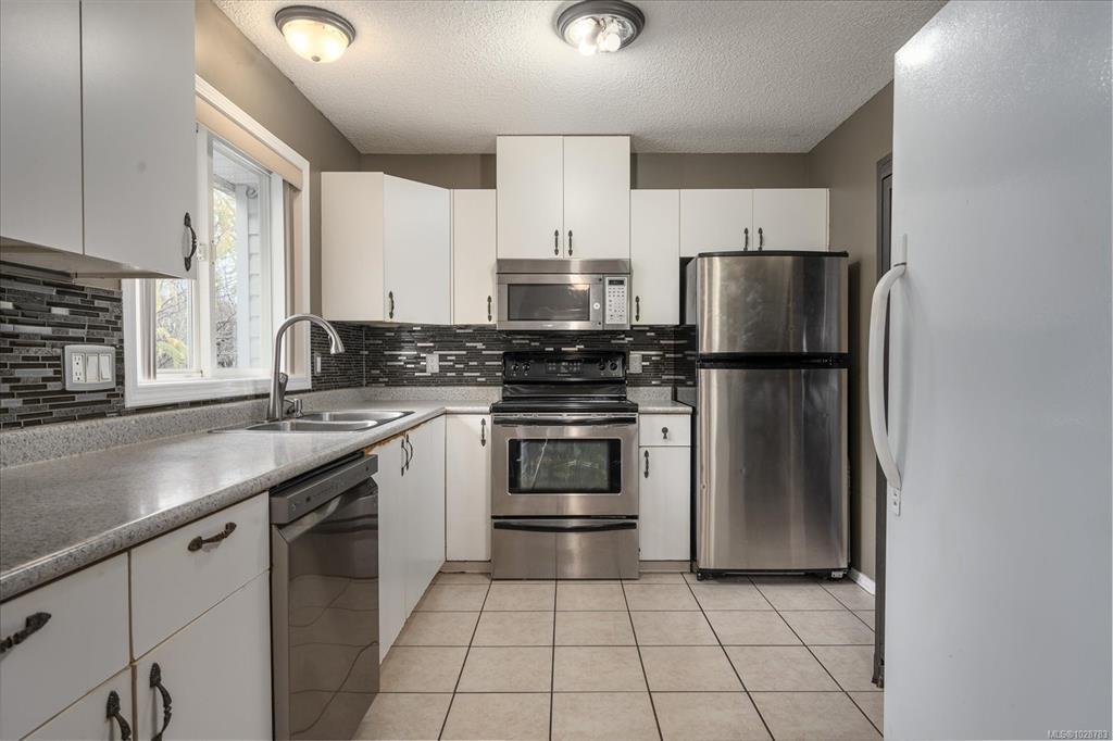 Enjoy peek-a-boo views of Gabriola Island from this clean & well maintained 4-bedroom, 3-bathroom home located on a quiet no-through street close to all level schools & VIU. The main level features a gas fireplace, a charming hutch inset, updated lighting, & modern paint colors throughout. A skylight brightens the 4-piece bathroom, while the fully fenced backyard offers a spacious retreat with a 200 sq ft sun-filled deck—perfect for summer evenings. The yard becomes a true haven in warmer months, complete with a big workshop for projects or storage. The roof is about six years old, On demand hot water was installed in 2017. Downstairs, 1-bedroom unauthorized cozy suite with separate entry & separate laundry, Therapy tub/shower in bath adds versatility for family or income. With plenty of parking on driveway, & front yard edge, & along the street, plus a generous backyard, this home blends comfort, functionality, & charm in a desirable, peaceful location. All measurements are approx