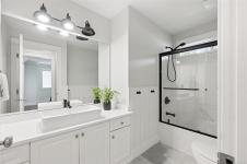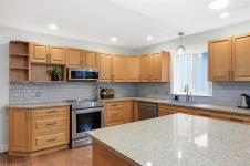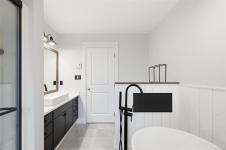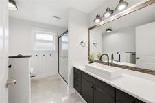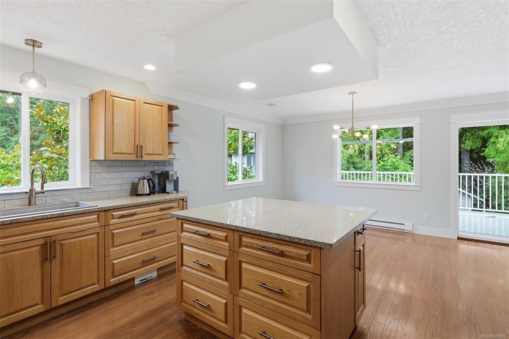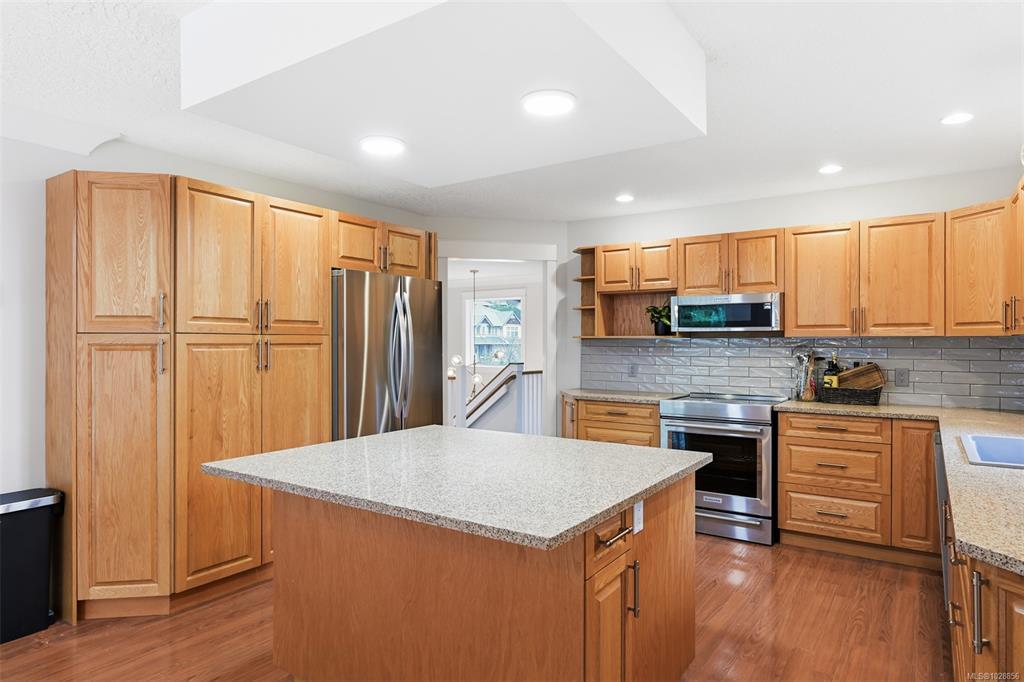 Bright & spacious custom-built home in the sought-after Latoria Walk neighborhood. The open-concept main level is filled with natural light & features a welcoming living room with gas fireplace & a large kitchen & dining area ideal for entertaining. 3 main-floor bedrooms include 2 with ensuites & walk-in closets, with beautifully updated bathrooms feat. quartz counters, new tile flooring & a luxurious freestanding soaker tub in the primary. The ground level offers a flexible layout with an additional bedroom, new 3-piece bath + two flexible spaces which could be used as bedrooms or an office. The 925 sq.ft legal 1-bed suite has been fully renovated with new appliances, double vanity & zero-entry shower. Numerous updates include vinyl flooring, modern lighting, mini-split heating & cooling & smart home features. The private fully fenced backyard backs onto forest & showcases a water feature, mature trees & multiple outdoor spaces to relax. Just steps to parks, trails & Red Barn Market.