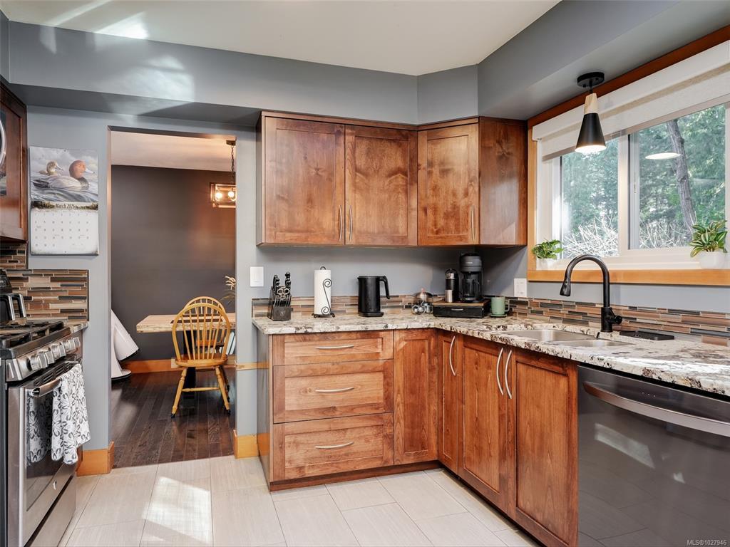 This immaculately maintained split level family home, situated on a private easy care quarter acre lot in sought after Greig Estates, is absolutely "move-in" ready! The owners have undertaken extensive upgrades over the last few years, including a new roof, gutters, vinyl windows, exterior garage door, skylight, blinds, wood stove, baseboard heaters, fridge, dishwasher, microwave and E/V charger, just to name a few. The bright and spacious kitchen features an eating bar and leads down to a large craftsman finished family room with sliding door access to the private rear yard and patio area. Beautiful wood floors throughout most of the main living space, a gas fireplace and gas range, on-demand hot water, and the list goes on. A double garage and plenty of additional parking to accommodate your boat or R/V complete the package. Near shopping, schools, transit, walking trails and Butchart Gardens. This is great value in an outstanding location. Your early inquiries are encouraged .