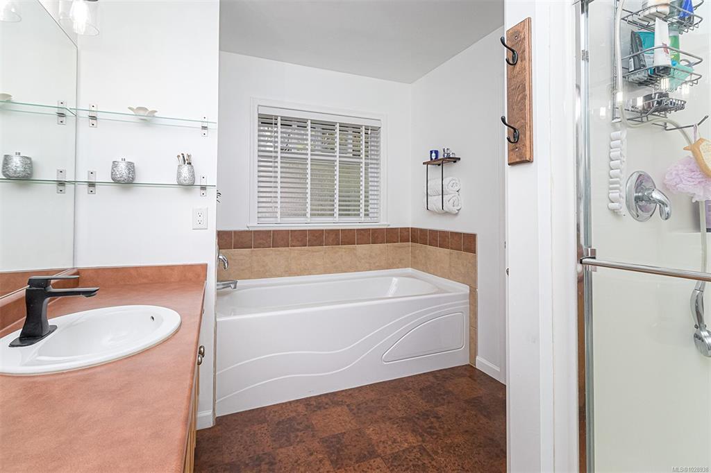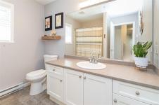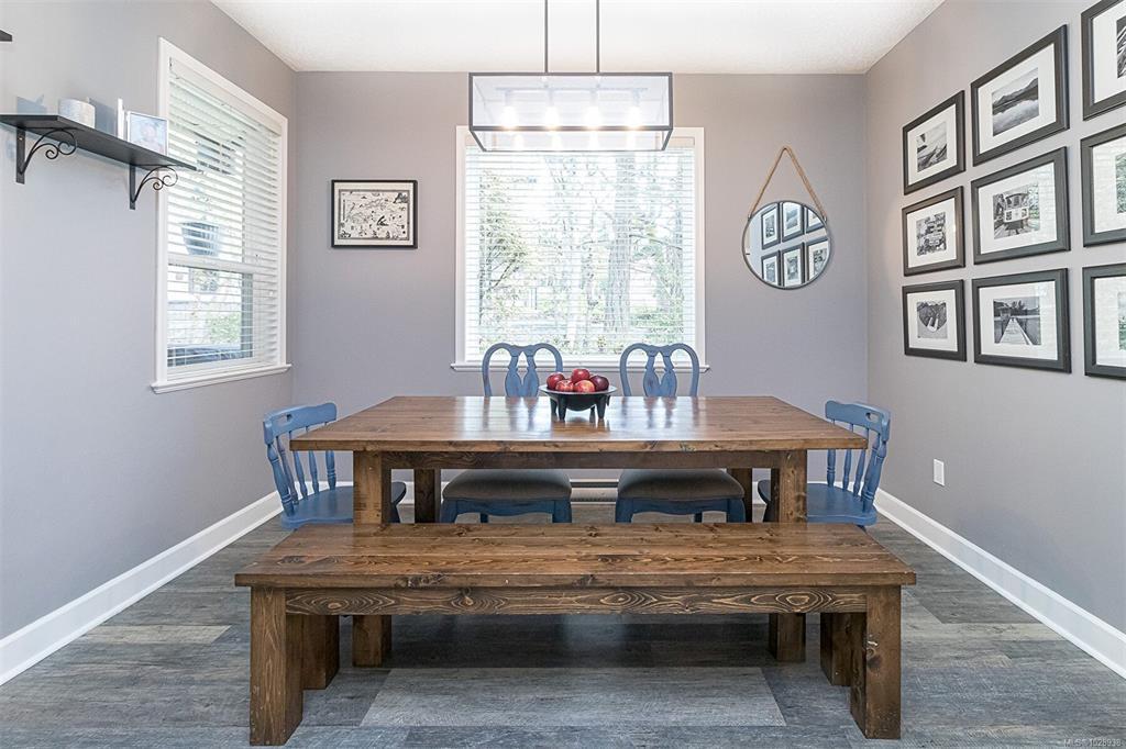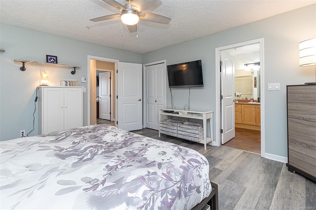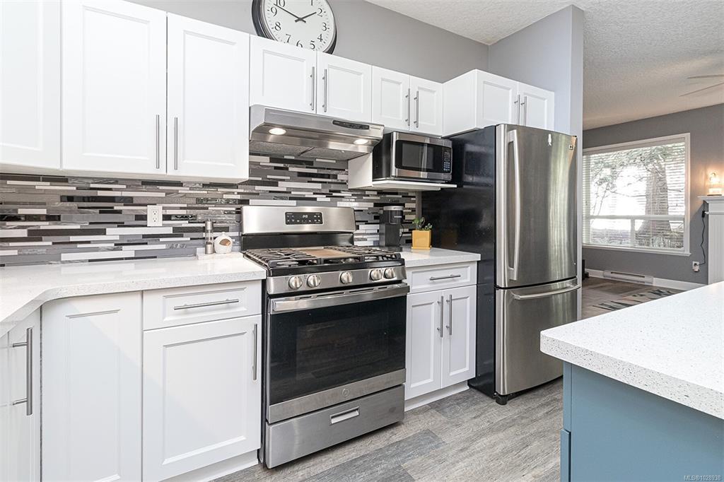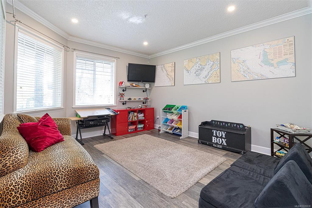 Welcome to this executive townhouse in View Royal in "Hidden Oaks". This 3 bedroom 3 bathroom home is situated on a beautiful mature landscaped lot with a great outdoor patio and garden areas. The main floor of this home is very welcoming and offers a very open concept layout with great design and flow. From the gorgeous kitchen with island and huge and bright dining room adjoining the large family room with gas fireplace. Enjoy your private patio with gas bbq hookup and the mature and well maintained garden areas. The kitchen is perfection with views of the home in all directions and lots of large windows. Upstairs there are 3 beautiful large bedrooms with 2 of them including the master facing the back of the home where you overlook the beautiful lush trees. Master and Ensuite are beautifully finished with a nice wood feature wall. Double car garage with high ceilings and ample storage. Great complex! Just completed new roofs and about to update all exterior painting of the complex
