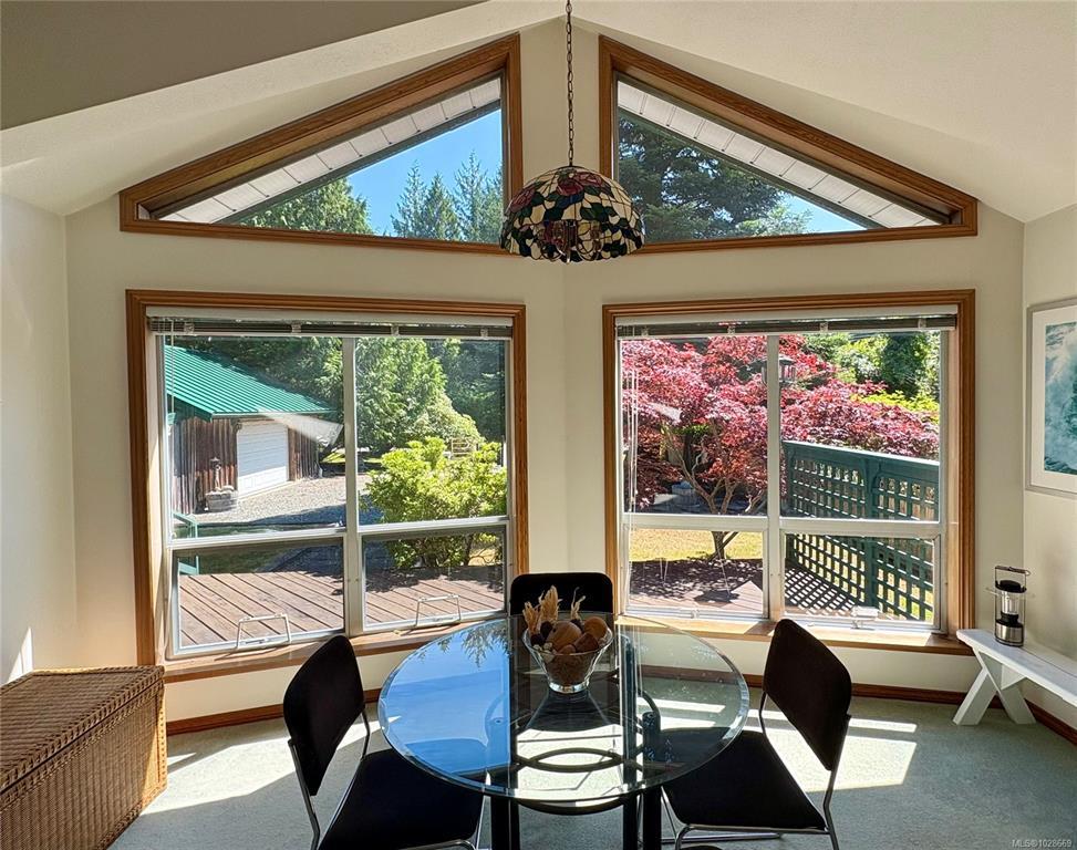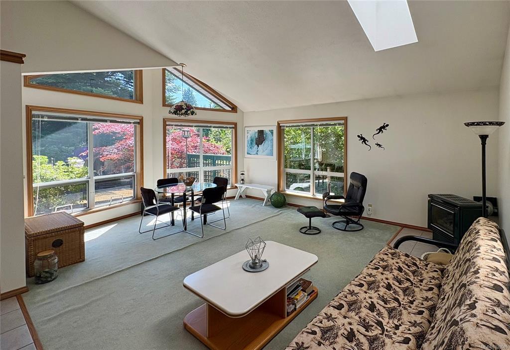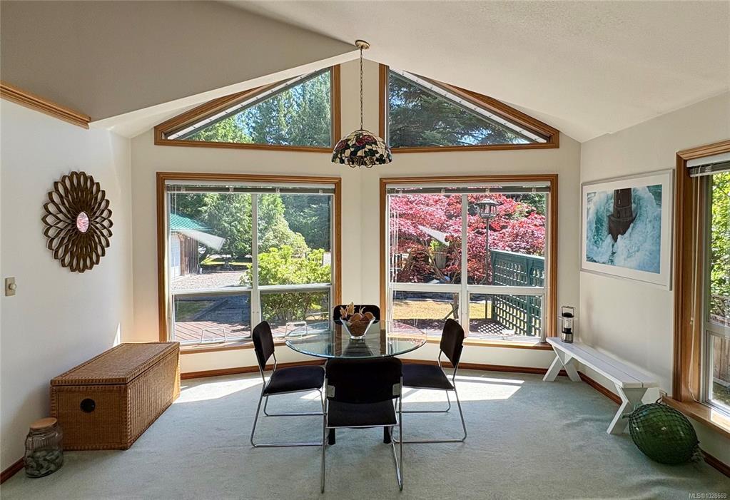 Located in one of Denman Island’s most established residential neighbourhoods, this 2-bedroom, 1-bath cedar-clad rancher offers 1,089 sq ft on a private half-acre lot, a short walk from the sandy beach and trails at Fillongley Provincial Park. The open-plan living area features vaulted ceilings and dual skylights, with a well-appointed kitchen offering oak cabinetry and a breakfast peninsula. Two bedrooms at the rear of the home are served by a full bath. A detached garage with new roof includes a flex room, additional bathroom, and storage — suitable for a studio, workshop, or home office. The treed rear yard includes a seasonal creek and pond. Shallow well and septic in place. Priced as an accessible entry point into the Denman market with proximity to park, beach, and community amenities.