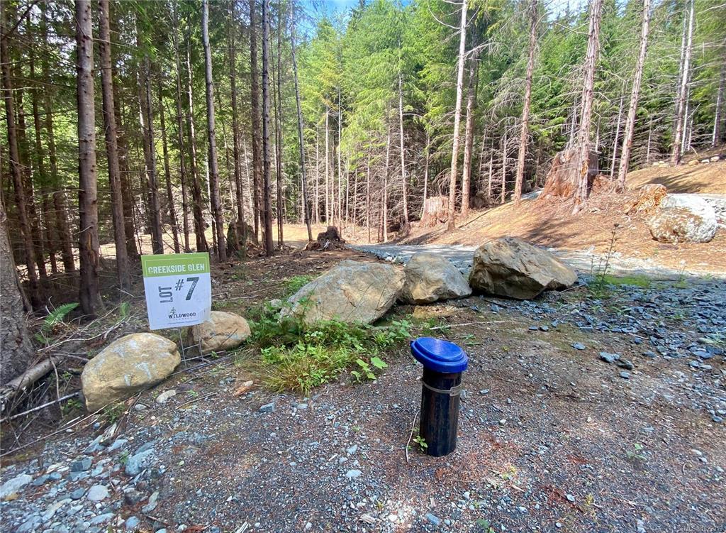 West Coast Jordan River Acreage with drilled well producing approx. 20 GPM! 2.5 acres on Creekside Glen in the heart of the west coast of Vancouver Island. Lot 7 is ideally located in this quiet rural neighbourhood adjacent to crown land north of China Beach Park boundary. This gently sloping south facing wooded lot has a gravel driveway constructed and building area already cleared. Hydro on the road. This lot is ready for your West Coast dream home, weekend getaway, or just hold for later. Located just minutes to the surf and beaches of Jordan River, China Beach and the Juan de Fuca trail on Vancouver Islands amazing west coast. Easy access off new paved road off Hwy 14, 30 mins west of Sooke. All Lots are Fee Simple not Strata. Price is plus GST and ready for quick possession.