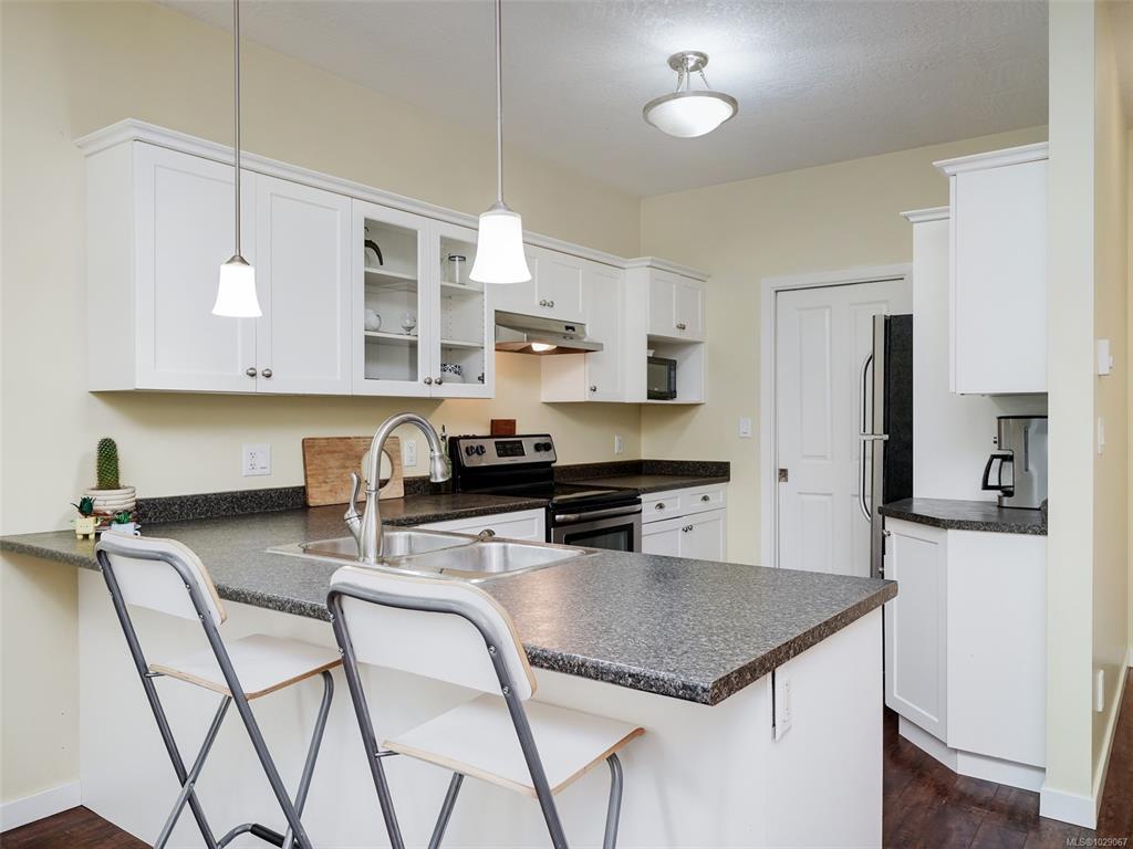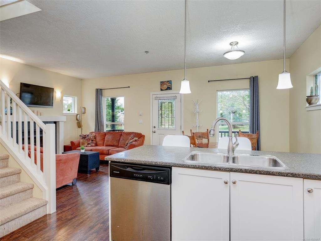 OPEN HOUSE SAT., MARCH 21, 12:00-2:00pm. One-level living at a very affordable price! With timeless style, this modern farmhouse offers a bright open-concept living area, primary bedroom, full bathroom and laundry all on the main floor plus two additional bedrooms & bathroom upstairs for family or guests. The main level includes 9' ceilings, a cozy gas fireplace and a practical mud room entry that opens onto the fenced back yard, ideal for your littles and pets. The white shaker kitchen offers plenty of cabinetry plus a peninsula eating bar with room for 4 stools. Ample attic & under-stair storage too. The fantastic laneway lot is gated for privacy, you can park on the rear concrete drive or use it as a patio or play area, there's street parking out front. You'll enjoy sunset skies from the front veranda while looking out at green hobby farm fields across the street. Located in the quiet Luxton area, steps to the Galloping Goose Trail, Happy Valley Elementary School.