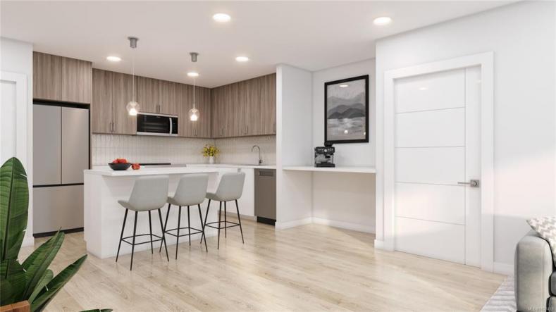 Ideally located in Vic West’s vibrant Railyards community, this stylish townhouse offers 1,224 sq. ft. of thoughtfully designed living space, complemented by a generous 438 sq. ft. patio—an ideal setting for outdoor dining and entertaining. The lower level has a versatile office or studio space, a convenient two-piece powder room, and direct access to your parking. Upstairs, the main floor…