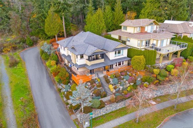 Enjoy exceptional space, privacy, and south-facing ocean views in this elevated Royal Bay home. 5 Beds, 4 baths, with suite, and a double car garage! Positioned above neighbouring properties, it offers sweeping vistas of the Olympics from a secluded front balcony, plus a fenced west-facing patio for sunny outdoor living. The main level a generous primary suite with full ensuite…
